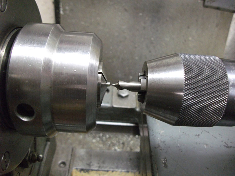 Und dann mit einem Zentrierbohrer, der einen 2mm Zapfen hat, ein Loch